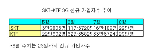 [¸Ó´ÏÅõµ¥ÀÌ ÀÓÁö¼ö±âÀÚ][8¿ù 3G ½Å±Ô °¡ÀÔÀÚ¼ö SKT 22¸¸ vs KTF 29¸¸]