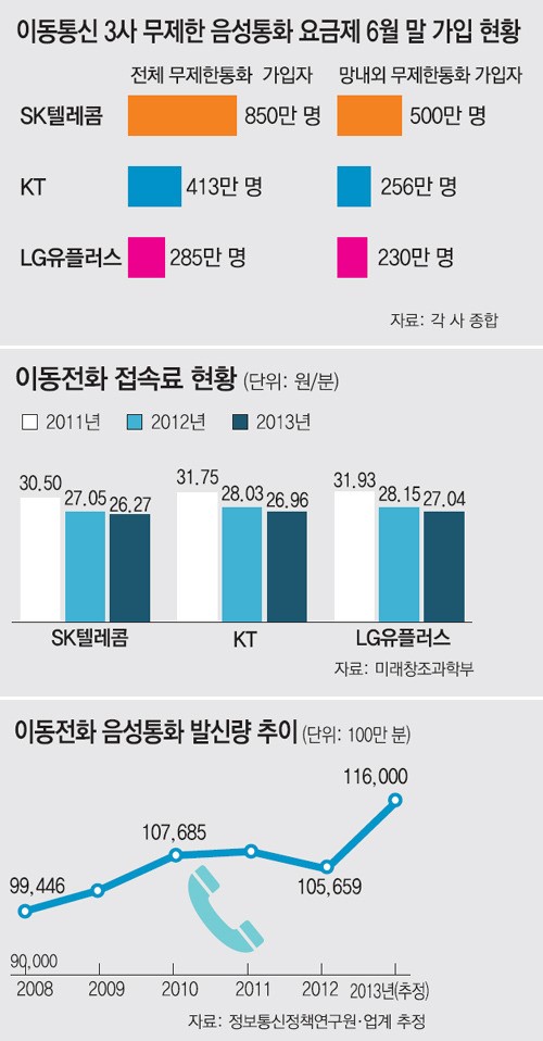 Á¤º¸Åë½ÅÁ¤Ã¥¿¬±¸¿ø(KISDI)ÀÌ °ø½Ä Áý°èÇÏ´Â ±¹³» Àüü À̵¿ÀüÈ­ À½¼ºÅëÈ­·®(¹ß½Å ±âÁØ)Àº 2011³â±îÁö ´Ã¾î³ª´Ù°¡ 2012³â °¨¼Ò Ãß¼¼·Î Á¢¾îµé°í ÀÖ¾ú´Ù. ÇÏÁö¸¸ ¹«Á¦ÇÑÅëÈ­ ¿ä±ÝÁ¦ Ãâ½Ã ÈÄ ´Ù½Ã ¹ÝµîÇÏ´Â °ÍÀ¸·Î ³ªÅ¸³µ´Ù. SKÅÚ·¹ÄÞ °ü°èÀÚ´Â ¡°°¨¼Ò Ãß¼¼¿´´ø Æò±Õ À½¼ºÅëÈ­·®ÀÌ ¿ä±ÝÁ¦ Ãâ½Ã ÀÌÈÄ 15% °¡±îÀÌ ±ÞÁõÇß´Ù¡±¸ç ¡°·ÕÅÒ¿¡¹ú·ç¼Ç(LTE) µ¥ÀÌÅÍ ½Ã´ë¿¡µµ ¿©ÀüÈ÷ À½¼ºÅëÈ­°¡ Áß¿äÇÏ¸ç ¿ä±ÝÁ¦ ¼±ÅÃÀÇ ±âÁØÀÓÀÌ Áõ¸íµÆ´Ù¡±°í ¼³¸íÇß´Ù.
