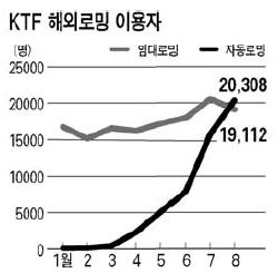 KTF´Â Áö³ 8¿ù ÇØ¿Ü¿¡¼ ¾²´Â ¾Æ¿ô¹Ù¿îµå ·Î¹Ö °¡¿îµ¥ ÀÚµ¿·Î¹Ö ÀÌ¿ëÀÚ°¡ 2¸¸308¸íÀ¸·Î ÀÓ´ë·Î¹Ö(1¸¸9112¸í)À» óÀ½À¸·Î ³Ñ¾î¼¹´Ù°í 7ÀÏ ¹àÇû´Ù.