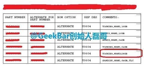 °ø°³µÈ ¼·ù Áß Çϳª´Â ¾ÆÀÌÆù6ÀÇ ³½µåÇ÷¡½Ã °ü·Ã »ç¾çÀ» µµ½ÄÈÇØ³õÀº °ÍÀ¸·Î Á¦¸ñ¿¡´Â £§NAND-1YNM-128GX8-TLC-PPN1.5-128G£§¶ó´Â ¹®±¸°¡ ÀûÇôÀÖ´Ù.