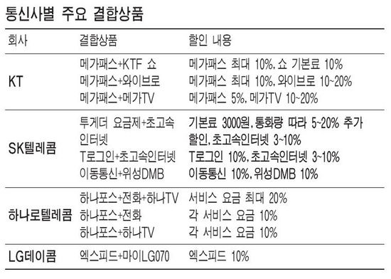ÀÌó·³ Åë½Å »óǰÀ» ¿©·µ ÀÌ¿ëÇÏ´Â °¡Á¤¿¡¼­´Â µÎ¼¼ °¡Áö ¼­ºñ½º¸¦ ¹­Àº °áÇÕ»óǰ¿¡ °¡ÀÔÇÏ¸é µû·Î ÀÌ¿ëÇÒ ¶§º¸´Ù ¿ä±ÝÀ» 10% ÀÌ»ó ÁÙÀÏ ¼ö ÀÖ´Ù.