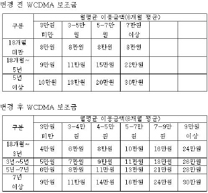 ÀÌ¿¡ µû¶ó ±×µ¿¾È WCDMA °¡ÀÔÀÚ¿¡°Ô Á¦°øµÇ´ø 18°³¿ù ¹Ì¸¸ »ç¿ëÀÚÀÇ º¸Á¶±Ý ±¸°£Àº »ç¶óÁö°í, º¸Á¶±Ý Áö±Þ¾× ¿ª½Ã ¾à 5¸¸¿ø °¡·® ÁÙ¾îµé ¿¹Á¤ÀÌ´Ù.