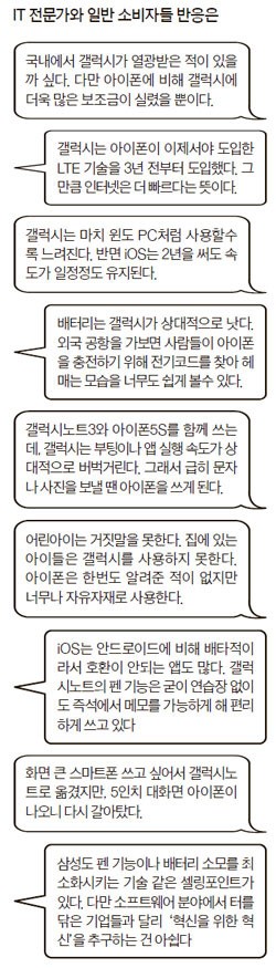 ¡¡ÇÑ ¿Ü±¹°è IT¾÷ü ´ëÇ¥´Â ¡°¾Èµå·ÎÀ̵å·Î ÀÛµ¿µÇ´Â °¶·°½Ã´Â À©µµ PC¸¦ »ç¿ëÇÏ´Â °Íó·³ °¥¼ö·Ï Á¦Ç° ¼Óµµ°¡ ´À·ÁÁø´Ù¡±¸é¼­ ¡°¾ÆÀÌÆùÀº 2³âÀ» ½áµµ Á¦Ç° ±¸µ¿¿¡ º° Â÷À̰¡ ¾ø´Ù¡±°í ¸»Çß´Ù. ÆÐ³Î·Î Âü°¡ÇÑ ·ÎÆß ¼Ò¼Ó º¯È£»ç´Â ¡°°¶·°½Ã³ëÆ®3¿Í ¾ÆÀÌÆù5S¸¦ ÇÔ²² ¾²´Âµ¥, °¶·°½Ã´Â ºÎÆÃÀ̳ª ¾Û ½ÇÇà ¼Óµµ°¡ »ó´ëÀûÀ¸·Î ¹ö¹÷°Å¸°´Ù¡±¸é¼­ ¡°±×·¡¼­ ±ÞÈ÷ ¹®ÀÚ³ª »çÁøÀ» º¸³¾ ¶© ¾ÆÀÌÆùÀ» ¾²°Ô µÈ´Ù¡±°í ´äÇß´Ù.
