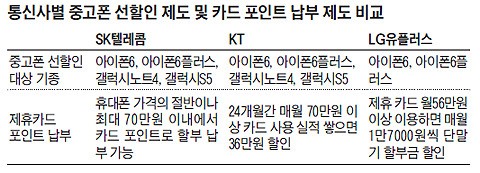 Áö³­´Þ ¾ÖÇÃÀÇ £§¾ÆÀÌÆù6£§ Ãâ½Ã¿Í ÇÔ²² ±¹³» ÀÌÅë»çµéÀº 18°³¿ù µÚ ÈÞ´ëÆùÀ» ¹Ý³³ÇÏ´Â Á¶°ÇÀ¸·Î ¹Ì¸® Áß°íÆù ½Ã¼¼¸¸Å­ °¡°Ý¿¡¼­ »©ÁÖ´Â £§Áß°íÆù ¼±º¸»ó ÇÁ·Î±×·¥£§À» µµÀÔÇß´Ù. LGÀ¯Ç÷¯½º°¡ £§Á¦·ÎŬ·´£§À¸·Î ¸Ç ¸ÕÀú Æ÷¹®(øßÚ¦)À» ¿­¾ú°í, SKÅÚ·¹ÄÞÀÌ £§ÇÁ¸®Å¬·´£§, KT°¡ £§½ºÆÝÁö 0(Á¦·Î) Ç÷££§ µîÀ» µµÀÔÇß´Ù.