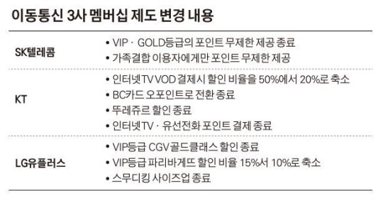 ÀÌó·³ Åë½Å¾÷üµéÀÇ ÀϹæÀûÀÎ ¸â¹ö½Ê ÇÒÀÎ ÇýÅà Ãà¼Ò°¡ À̾îÁö¸é¼­ ¼ÒºñÀÚµéÀÇ ¼±ÅñÇÀ» Å©°Ô ÁÙÀδٴ ÁöÀûÀÌ ³ª¿À°í ÀÖ´Ù. ±×·¸´Ù º¸´Ï ½ÇÁ¦·Î ÀÌ¿ëÀÚµéÀÌ È°¿ëÇÒ ¹æ¹ýÀÌ ¾ø¾î ±×´ë·Î ¹¬È÷´Â ¸â¹ö½Ê Æ÷ÀÎÆ®°¡ Áö³­ÇØ¿¡¸¸ ¾à 4,700¾ï¿ø¿¡ À̸£´Â °ÍÀ¸·Î Ãß»êµÆ´Ù. Åë½Å¼ÒºñÀÚÇùµ¿Á¶ÇÕ °ü°èÀÚ´Â ¡°À̵¿Åë½Å¾÷üµéÀÌ ÀÌ¿ëÀÚ¸¦ ²ø¾î ¸ðÀ¸±â À§ÇÑ ¸¶ÄÉÆÃ ¼ö´ÜÀ¸·Î ¸â¹ö½Ê ÇýÅÃÀ» È®´ëÇß´Ù°¡ ½Ã°£ÀÌ Áö³ª¸é ÁÙÀ̰ųª ¾ø¾Ö´Â ÀÏÀÌ ¸Å³â ¹Ýº¹µÇ°í ÀÖ´Ù¡±¸ç ¡°¾÷üµéÀÌ ¸¶À½´ë·Î ÇýÅÃÀ» ÁÙÀÌÁö ¸øÇϵµ·Ï Á¦µµ¸¦ º¸¿ÏÇϰí, ³²Àº Æ÷ÀÎÆ®´Â ´ÙÀ½ ÇØ·Î ÀÌ¿ùÇϰųª ºó°ïÃþ¿¡ ±âºÎÇÒ ¼ö ÀÖµµ·Ï ÇØ¾ß ÇÑ´Ù¡±°í °­Á¶Çß´Ù.