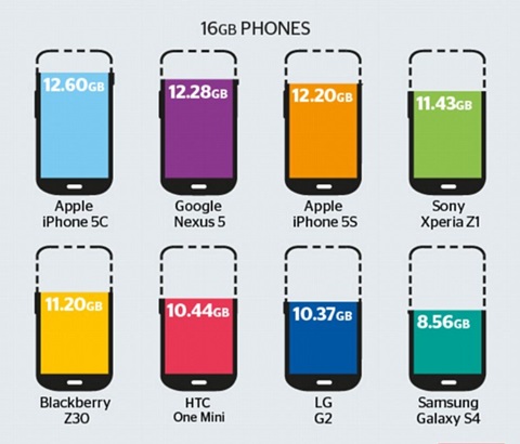 ½ÇÁ¦·Î 16GB¹öÀü ´Ü¸»±â¸¦ ±âÁØÀ¸·Î ºñ±³ÇÒ ¶§ °¡Àå ÀαâÀÖ¾ú´ø »ï¼º °¶·°½ÃS4 °í°´ÀÌ »ç¿ëÇÒ ¼ö ÀÖ´Â ¸Þ¸ð¸®¿ë·®Àº ÁÖ¿ä ½º¸¶Æ®Æùµé °¡¿îµ¥ °¡Àå ³·´Ù. ÁÖ¿ä ´Ü¸»±âº° ¸Þ¸ð¸® °¡¿ë ¿ë·®À» º¸¸é ¡ã¾ÖÇà ¾ÆÀÌÆù5C(12.60GB)¡ã±¸±Û ³Ø¼­½º5(12.28GB)¡ã¾ÖÇà ¾ÆÀÌÆù5S(12.20GB) ¡ã¼Ò´Ï ¿¢½ºÆä¸®¾Æ Z1(11.43GB) ¡ãºí·¢º£¸® Z30(11.2GB) ¡ãHTC¿ø¹Ì´Ï(10.44GB) ¡ãLG G2(10.37GB) ¡ã»ï¼º °¶·°½ÃS4(8.56GB) µîÀ̾ú´Ù.
