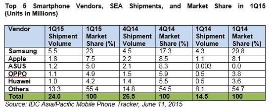 1ÀÏ ½ÃÀåÁ¶»ç¾÷ü IDC¿¡ µû¸£¸é »ï¼ºÀüÀÚ´Â Áö³­ 1ºÐ±â ½Ì°¡Æ÷¸£, ű¹, ¹Ì¾á¸¶ µî µ¿³²¾Æ½Ã¾Æ Áö¿ª¿¡¼­ ÃÑ 550¸¸´ëÀÇ ½º¸¶Æ®ÆùÀ» ÆÇ¸ÅÇØ 1À§¸¦ Â÷ÁöÇß´Ù.