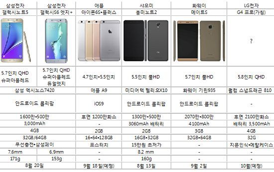 ÇϹݱâ Ãâ½ÃµÇ´Â ÁÖ¿ä Á¦Á¶»çÀÇ ½ÅÁ¦Ç°ÀÌ ¸ðµÎ 5.5ÀÎÄ¡ ÀÌ»ó ´ëÈ­¸éÀ» äÅÃÇϸ鼭 5ÀÎÄ¡ ÀÌ»ó ´ëÈ­¸é ½º¸¶Æ®ÆùÀ» ÀÏÄ´ ÆÐºí¸´(Phablet¡¤Æù+ÅÂºí¸´ÀÇ ÇÕ¼º¾î) ½ÃÀå¿¡¼­ Ä¡¿­ÇÑ °æÀïÀÌ ¿¹°íµÈ´Ù.