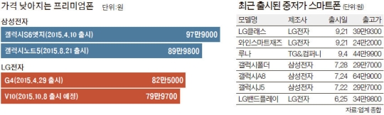 ¡¡½ÇÁ¦ ÃÖ±Ù µé¾î ÇÁ¸®¹Ì¾öÆùÀÇ Ãâ°í°¡°¡ ³·¾ÆÁö°í ÀÖ´Ù. LGÀüÀÚ°¡ 8ÀÏ Ãâ½ÃÇÏ´Â V10Àº ¡®¼öÆÛ ÇÁ¸®¹Ì¾öÆù¡¯À̶ó´Â ¸»ÀÌ ³ª¿Ã Á¤µµ·Î ÃֽŠ»ç¾çÀ» °®ÃèÁö¸¸ Ãâ°í°¡´Â 70¸¸¿ø´ë·Î Áö³ 4¿ù ³ª¿Â 80¸¸¿ø´ë G4º¸´Ù ³·´Ù. »ï¼ºÀüÀÚµµ 8¿ù ¼±º¸ÀÎ °¶·°½Ã³ëÆ®5ÀÇ °¡°ÝÀ» 80¸¸¿ø´ë·Î Ã¥Á¤Çߴµ¥ ÀÌ´Â ÀÌÀü ¸ðµ¨ÀÎ °¶·°½Ã³ëÆ®4 ¹× °¶·°½ÃS6¿§Áöº¸´Ù ³·Àº °ÍÀÌ´Ù. ÀÌ·¸°Ô ±¹³» Á¦Á¶»çµéÀÌ ÀÚ¼¼¸¦ ³·Ãá °Ç ÃÖ±ÙÀÇ ÀÏÀÌ´Ù. »ï¼ºÀüÀÚÀÇ °æ¿ì ¿Ã 4¿ù °¶·°½ÃS6¸¦ Ãâ½ÃÇÒ ¶§¸¸ ÇØµµ ¾ÖÇÃÀÇ ¾ÆÀÌÆù6¿Í ¶È°°°Ô °¡°ÝÀ» Ã¥Á¤Çϸç ÀÚÁ¸½É ´ë°áÀ» Çß´Ù. ÇÏÁö¸¸ ½ÃÀå »óȲÀÌ º¯ÇÏ¸é¼ ÀÌÁ¦´Â ½Ç¸®¸¦ ì±â´Â ÂÊÀ¸·Î ¼±È¸ÇÑ °ÍÀÌ´Ù.