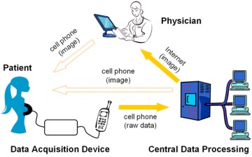 À̹ø ¿¬±¸´Â ÀÌ·¯ÇÑ ´Ü¼øÇÑ ±â´ÉÀ» ÇÏ´Â Çϵå¿þ¾î ºÎºÐÀ» ¿µ»ó ±â±â¿¡¼­ ºÐ¸®½ÃÄѼ­ º¸´Ù ¸¹Àº ȯÀڷκÎÅÍ ¿ø°ÝÀ¸·Î Á¤º¸¸¦ ¼öÁýÇϰí À̸¦ Áß¾Ó ÁýÁßÀûÀÎ µ¥ÀÌÅÍ ¼¾ÅÍ¿¡¼­ ¿µ»ó ó¸® ¼ÒÇÁÆ®¿þ¾î·Î ÇÏ¿©±Ý ó¸®, °ü¸®, ±×¸®°í Àǻ翡°Ô ÀÎÅͳÝÀ¸·Î °á°ú¸¦ ÀüÇØÁÖ´Â °³³ä¿¡¼­ Ãâ¹ßÇß°í. ¿ø°Ý Á¤º¸ ¼öÁýÀÇ ¸Å°³Ã¼·Î¼­ ÈÞ´ëÆù Åë½Å¸ÁÀ» ÀÌ¿ëÇÑ´Ù. ¾Æ·¡ ±×¸²Àº À¯¹æ¾Ï ÀÚ°¡ Å×½ºÆ® ±â±â( ¾Õ¼­ ¾ð±ÞÇÑ Data Acquisition Device)¸¦ ÀÌ¿ëÇØ ´Ü¼øÇÑ Àü±âÀû ½ÅÈ£ Á¤º¸¸¸À» ÃßÃâÇØ³½ Àú¿ë·®ÀÇ ¿ø½Ã µ¥ÀÌÅÍ(raw data)¸¦ ÈÞ´ëÆù ¸ÁÀ» ÅëÇØ Áß¾Ó Á¤º¸Ã³¸® ¼¾ÅÍ·Î º¸³»°í, ¿©±â¼­ À̸¦ ó¸®, º¹¿øÇؼ­ ¿ÂÀüÇÑ ¿µ»óÀ» ±¸¼ºÇÑ ÈÄ Àǻ翡°Ô º¸³»ÁÖ´Â ¹æ½ÄÀ» º¸¿©ÁØ´Ù. ¶Ç ÇÊ¿äÇÏ´Ù¸é ÈÞ´ëÆùÀ» ÅëÇØ º¹¿øµÈ °í¿ë·® ¿µ»óÀ» ¹Þ¾Æ º¼ ¼öµµ ÀÖ´Ù.