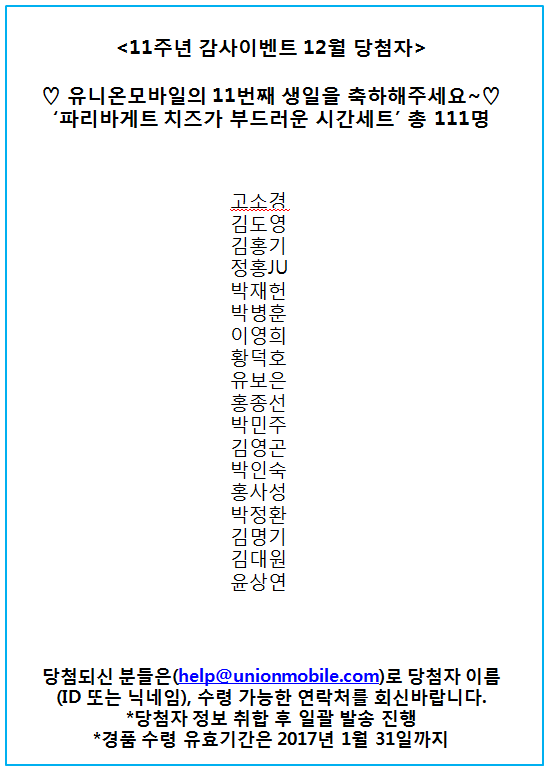 [À̺¥Æ®]À¯´Ï¸ð¿Í ÇÔ²²ÇÏ´Â 11Áֳ⠰¨»çÀ̺¥Æ® 12¿ù ´ç÷ÀÚ °øÁö