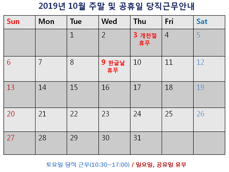 [2019³â 10¿ù ÁÖ¸» ¹× °øÈÞÀÏ ´çÁ÷±Ù¹« ¾È³»]