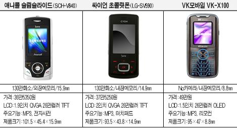 µðÀÚÀΰú °¡°ÝÀ» Áß½ÃÇÏ´Â ½Ç¼ÓÆÄ ºñÁî´Ï½º¸Ç¿¡°Ô ÀûÇÕÇÏ´Ù°í ÇÒ ¼ö ÀÖÀ¸¸ç, Ä«¸Þ¶ó ±â´ÉÀº °ú°¨È÷ Á¦°ÅÇß´Ù. 1.5ÀÎÄ¡ 26¸¸ Ä÷¯ OLED LCD¸¦ äÅÃÇÏ¿©, TFT LCD¿¡ ºñÇØ ½Ã¾ß°¢ÀÌ ³Ð°í, ¹ÝÀÀ¼Óµµ°¡ ºü¸£´Ù. ³»ÀåµÈ 80MB ¸Þ¸ð¸®·Î MP3 ûÃë°¡ °¡´ÉÇϸç, ÃÖ´ë 20¿©°î ÀúÀåÀÌ °¡´ÉÇÏ´Ù. ±¹³»¿¡¼´Â º¸±â µå¹® ¹Ù ŸÀÔ¿¡ ¸ÞÅ» ŰÆÐµå¸¦ äÅÃÇÏ¿´´Ù. ¸®¸ðÄÁ ±â´Éµµ Áö¿øÇÑ´Ù.