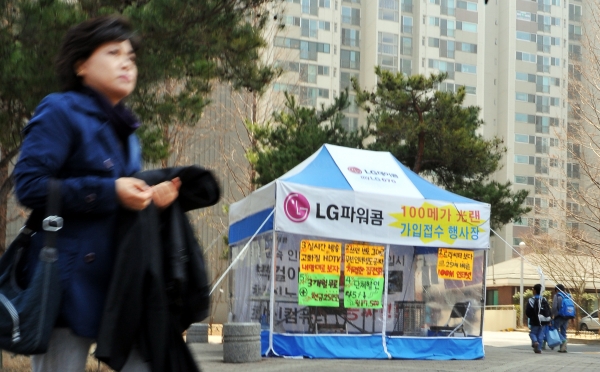 KT¿Í KTF ÅëÇÕ ÀÌÈÄ °¢ Åë½Å»çµéÀÇ ÅëÇÕ ¸¶ÄÉÆÃÀÌ ´õ¿í °¡¿µÈ °¡¿îµ¥ 6ÀÏ °æ±âµµ ±èÆ÷ÀÇ ¸ð ¾ÆÆÄÆ® ´ÜÁö ¾È¿¡ ¼³Ä¡µÈ LGµ¥ÀÌÄÞ°ú LGÆÄ¿öÄÞÀÇ ÅëÇÕ ¸¶ÄÉÆÃÆÀÀÌ ¾ÆÆÄÆ® ÁÖ¹ÎÀ» ´ë»óÀ¸·Î ¹«Â÷º° ÆÇÃËÀüÀ» ÆîÄ¡°í ÀÖ´Ù. ÀÎÅͳݰú IPTV, À¯¹«¼±ÀüÈ µîÀ» Çϳª·Î ¹Àº Àú·ÅÇÑ ÆÐŰÁö ¿ä±Ý¿¡ Çö±ÝÁ¦°ø µîÀÇ °øÂ¥ ¸¶ÄÉÆÃÀ¸·Î °í°´À» À¯È¤Çϰí ÀÖ´Ù.