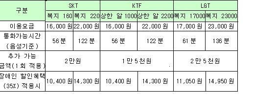 1ÀÏ Á¤º¸Åë½ÅºÎ¿¡ µû¸£¸é KTF°¡ Áö³­ÇØ 12¿ù 23ÀϺÎÅÍ Á¤½ÅÁöüÀå¾Ö¿ì ¿ë ¡®»óÇÑ ¾Ë 1000¡¯°ú ¡®»óÇÑ ¾Ë 2200¡¯ ¿ä±ÝÁ¦¸¦ µµÀÔÇÑ °ÍÀ» ½ÃÀÛÀ¸·Î SKÅÚ·¹ÄÞÀÌ 1¿ù 13ÀϺÎÅÍ ¡®º¹Áö 160¡¯, ¡®º¹Áö 220¡¯À̶ó´Â Á¤¾×¿ä±ÝÁ¦¸¦ ¿î¿µÇϰí ÀÖ´Ù.