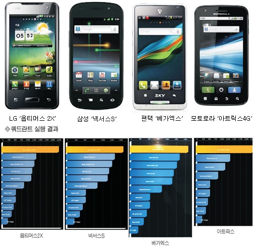 ¿Ü±¹ Á¦Á¶¾÷üÀÇ ½º¸¶Æ®Æù Áß °¡Àå ¶Ù¾î³­ ¼º´ÉÀ» ÀÚ¶ûÇÑ´Ù. ¿ÃÇØ CES¿¡¼­ ¹ßÇ¥µÈ ¸ðÅä·Î¶óÀÇ `¾ÆÆ®¸¯½º 4G`´Â 4ÀÎÄ¡ µð½ºÇ÷¹ÀÌ¿¡ ¿ÉƼ¸Ó½º2X¿Í °°ÀÌ 1GHz Å×±×¶ó2 µà¾óÄÚ¾î ÇÁ·Î¼¼¼­¸¦ žÀçÇϰí ÀÖ´Ù. ¶ÇÇÑ ½º¸¶Æ®Æù ÃÖÃÊ·Î 1GB ·¥À» žÀçÇϰí ÀÖ¾î ºü¸¥ µ¥ÀÌÅÍ Ã³¸®¼Óµµ¸¦ º¸¿©ÁØ´Ù. ¾ÆÆ®¸¯½ºÀÇ Äõµå¶õÆ® Á¡¼ö´Â 2264Á¡À¸·Î ¿ÉƼ¸Ó½º2X¿Í °ÅÀÇ ºñ½ÁÇÑ Á¡¼ö´ë¸¦ º¸ÀÌ¸ç µà¾óÄÚ¾î ÇÁ·Î¼¼¼­ÀÇ °­·ÂÇÔÀ» º¸¿©ÁØ´Ù.