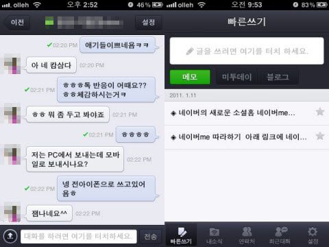 ¡®³×À̹öÅ塯Àº ¸ð¹ÙÀϰú PC¿¡¼­ ¸ðµÎ »ç¿ë°¡´ÉÇÑ Á¡À» Ư¡À¸·Î ³»¼¼¿ü´Ù. ³»°¡ PC·Î Ä£±¸µé°ú ¸»ÇÑ ³»¿ëÀ» °í½º¶õÈ÷ ¸ð¹ÙÀÏ¿¡¼­ È®ÀÎ °¡´ÉÇÑ °ÍÀº Æí¸®Çß´Ù. ¹Ý´ëÀÇ °æ¿ìµµ ¸¶Âù°¡Áö´Ù. PC¿¡¼­ ´ëÈ­ÇÑ ³»¿ëÀ» È®ÀÎÇϱâ À§ÇØ ±»ÀÌ ÄÄÇ»Å͸¦ ÄѰí Áö³­ ´ëÈ­ÇÔÀ» ã¾Æº¼ Çʿ䰡 ¾ø¾îÁ® ¸¸Á·½º·¯¿ü´Ù.