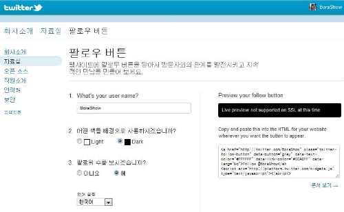Æ®À§ÅÍ ÆÈ·Î¿ì ´ÜÃ߸¦ »ç¿ëÇÏ·Á¸é Æ®À§ÅÍ °ø½Ä »çÀÌÆ®¿¡¼ ¡®ÀÚ·á½Ç-ÆÈ·Î¿ì ´ÜÃß ¸¸µé±â¡¯·Î µé¾î°¡¸é µÈ´Ù.