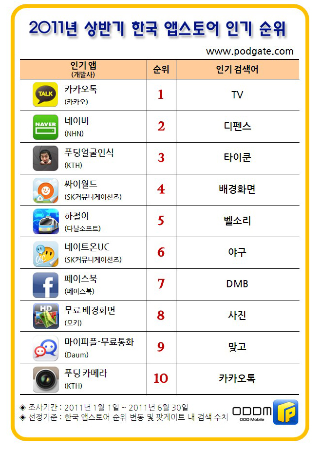 2011³â »ó¹Ý±â ±¹³» ¾ÆÀÌÆù »ç¿ëÀÚµéÀÌ °¡Àå ¸¹ÀÌ ´Ù¿î·Îµå ¹ÞÀº ¾ÖÇø®ÄÉÀ̼Ç(ÀÌÇÏ ¾Û)Àº ¡®Ä«Ä«¿ÀÅ塯À» ºñ·ÔÇÑ »ýȰ¹ÐÂøÇü ¸ð¹ÙÀÏ ¸Þ½ÅÀú¿´´Ù.