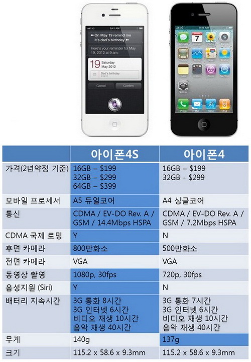 ¾ÆÀÌÆù4S´Â ±âÁ¸ 16GB¿Í 32GB ¿Ü¿¡ 64GB ¿ë·®ÀÇ Á¦Ç°ÀÌ ÇÔ²² ¼±º¸ÀδÙ. °¡°ÝÀº °¢°¢ ¹ÌÈ·Î 199´Þ·¯, 299´Þ·¯, 399´Þ·¯´Ù. ¾ÆÀÌÆù4S Ãâ½Ã¿Í ÇÔ²² ±âÁ¸ Á¦Ç°ÀÇ °¡°ÝÀÌ ³»·Á°¬´Ù´Â Á¡µµ ¹Ý°¡¿î ¼Ò½ÄÀÌ´Ù. ¾ÆÀÌÆù4´Â 99´Þ·¯, ¾ÆÀÌÆù3GS´Â ¾àÁ¤ °¡ÀÔÀ» ÅëÇØ ¹«·á·Î ±¸ÀÔÇÒ ¼ö ÀÖ´Ù.
