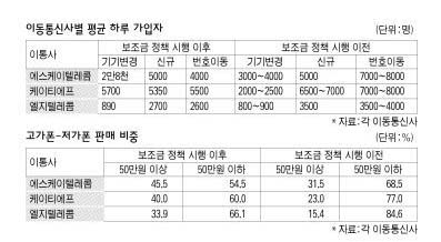 ÀÌ¿Õ ¹Ù²Ù´Â °Í ºñ½Ñ °É·Î=¾ÖÃÊ º¸Á¶±Ý Á¤Ã¥ÀÌ ½ÃÇàµÇ¸é¼­ Àü¹®°¡µéÀº ÈÞ´ëÀüÈ­ ¼ÒºñÇüŰ¡ Àú°¡¿Í °í°¡ÀÇ ¾ç±ØÈ­ Çö»óÀ» ¿¹»óÇß´Ù. ÇÏÁö¸¸ ¸·»ó ¶Ñ²±À» ¿­¾îº¸´Ï 50¸¸¿ø´ë ÀÌ»ó °í°¡ ÈÞ´ëÀüÈ­ ºñÁßÀÌ Å©°Ô ´Ã¾î³­ ¹Ý¸é Àú°¡´Â °¨¼ÒÇÑ °ÍÀ¸·Î ³ªÅ¸³µ´Ù.