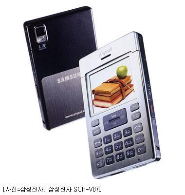 »ï¼ºÀüÀÚ´Â °ð µÎ²² 0.89§¯ÀÇ Ä«µåÆùÀ» Ãâ½ÃÇÑ´Ù. SKÅÚ·¹ÄÞÀ¸·Î Ãâ½ÃµÇ´Â SCH-V870Àº QVGA(240¡¿320 ÇØ»óµµ)¿¡ 130¸¸ È­¼Ò Ä«¸Þ¶ó¿Í ³»Àå Ç÷¡½Ã¸¦ °®°í ÀÖ´Ù. MP3 ±â´É°ú SKÅÚ·¹ÄÞÀÇ £§ÁØ£§(EVDO ¼­ºñ½º)À» ÀÌ¿ëÇØ VOD, MOD °¨»óµµ °¡´ÉÇÏ´Ù. SCH-V870Àº ±âÁ¸ Ä«µåÆù°ú ´Þ¸® ¸ÖƼ¹Ìµð¾î ±â´ÉÀÌ ´ëÆø Ãß°¡µÈ °ÍÀÌ Æ¯Â¡ÀÌ´Ù.