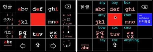 ¿¹¸¦ µé¾î `boy£§¸¦ ÀÔ·ÂÇÏ·Á¸é `abc£§°¡ ¸ðÀÎ 1¹øÅ°¿Í `mno£§°¡ ¸ðÀÎ 6¹øÅ°, `wxyz£§°¡ ¸ðÀÎ 9¹øÅ°¸¦ ´©¸£°í ³ª¼ ¿¹Ãø ´Ü¾î Áß Çϳª·Î `boy£§°¡ ³ªÅ¸³ª¸é Çϳ¯Å°¸¦ ´©¸¥ »óÅ¿¡¼ boy°¡ ÀÖ´Â 2¹øÅ° À§Ä¡·Î ¼Õ°¡¶ôÀ» ²ø¸é(drag) µÈ´Ù.