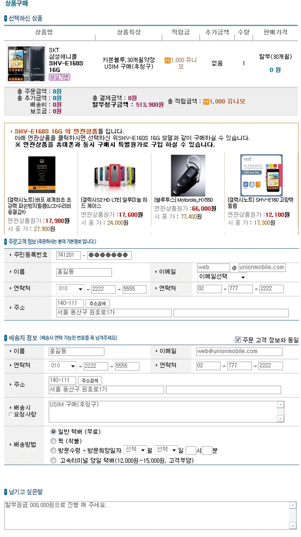 - »óǰ±¸¸Å ÆäÀÌÁö¿¡¼ ÁÖ¹® °í°´Á¤º¸, ¹è¼ÛÁö Á¤º¸¸¦ ÀÔ·ÂÇϼ¼¿ä