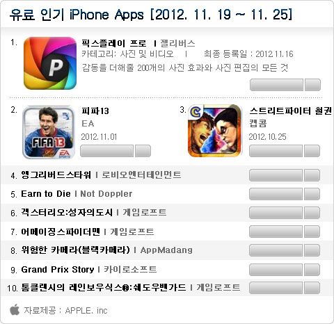 ¾ÆÀÌÆÐµå À¯·á ¾Û ºÎ¹®Àº ¾ÆÀÌÆù À¯·á ¾Û ´Ù¿î·Îµå 1, 2À§ÀÇ ÁÖÀΰøÀÎ ÇȽºÇ÷¹ÀÌ ÇÁ·Î¿Í ÇÇÆÄ13ÀÌ °¢°¢ 2À§¿Í 1À§¸¦ ±â·ÏÇÏ¸é¼ À¯·á ¾Û ½ÃÀåÀÇ °ÀÚÀÓÀ» È®ÀνÃÄ×´Ù. ¾ÖÇÃÀÌ ÀÚü °³¹ßÇÑ À½¾Ç ¾Û °Å¶óÁö¹êµåÀÇ 5À§ ±â·ÏÀº ¾ÆÀÌÆÐµå¹Ì´Ï TV ±¤°íÀÇ ¿µÇâÀ¸·Î Ç®À̵ȴÙ.