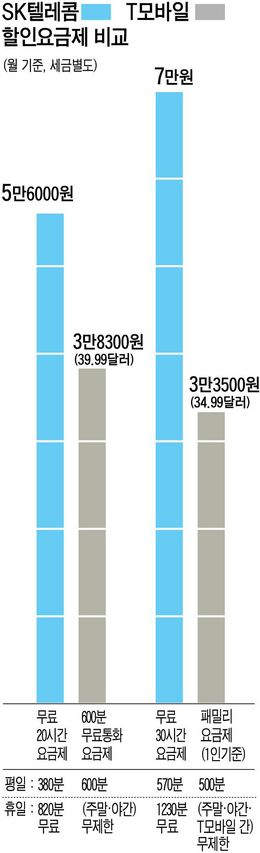 ÅëÈ­½Ã°£ÀÌ ±æ¸é ÇѹÌ(ùÛÚ¸) °£ ÅëÈ­·á °ÝÂ÷´Â ´õ Ä¿Áø´Ù. ¡®T¸ð¹ÙÀÏ¡¯»çÀÇ ¡®ÆòÀÏ 600ºÐ ¹«·áÅëÈ­¡¯ ¿ä±ÝÁ¦´Â ¿ù 39.99´Þ·¯´Ù. 4¸¸¿øµµ ¾È µÈ´Ù.