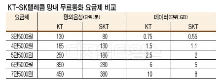 ƯÈ÷ KT´Â Àü ¿ä±ÝÁ¦¿¡¼ SKÅÚ·¹ÄÞ¿¡ ºñÇØ ¸Á¿Ü ÅëÈ·®À» 50¡80ºÐ °¡·® Ãß°¡·Î Á¦°øÇÑ´Ù. À̵¿ÀüÈ ½ÃÀåÁ¡À¯À² 50%·Î ¾ÐµµÀûÀÎ 1À§¸¦ ±â·ÏÇϰí ÀÖ´Â SKÅÚ·¹ÄÞ¿¡ ºñÇØ ¸Á³» ¹«·áÅëÈ¿¡¼ ¿¼¼ÀÎ Á¡À» ¸¸È¸Çϱâ À§ÇÑ Á¶Ä¡´Ù.
