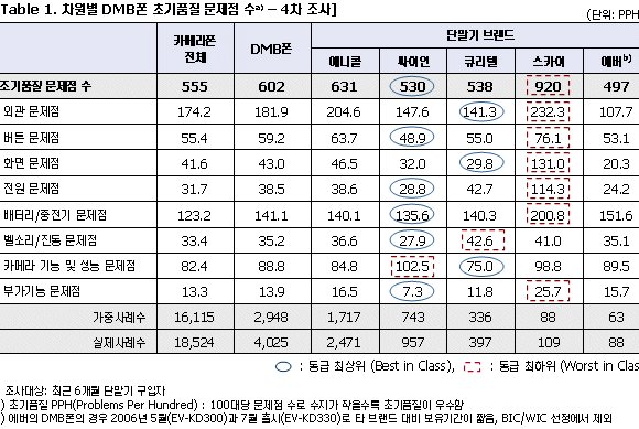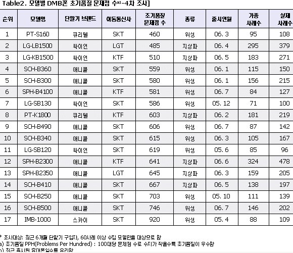 [EBN»ê¾÷´º½º ±è¹Îö ±âÀÚ] DMBÇÚµåÆùÀÌ ÀϹÝÇÚµåÆùº¸´Ù ¹®Á¦Á¡ ´õ ¸¹Àº °ÍÀ¸·Î Á¶»çµÆ´Ù. ƯÈ÷ DMBÆùÀÇ ÃʱâǰÁú ¹®Á¦Á¡ÀÌ ÀÏ¹Ý ÈÞ´ëÆùº¸´Ù ¸¹À¸¸ç, ±× Â÷ÀÌ´Â Áö³­ 3Â÷ Á¶»ç(2006³â 3¿ù ½Ç½Ã)¶§ º¸´Ùµµ ´õ Ä¿Áø °Í.