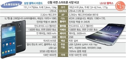 LGÀüÀÚ´Â 28ÀÏ LGµð½ºÇ÷¹À̰¡ °³¹ßÇÑ ¡®Ä¿ºêµå(curved) ÇÃ¶ó½ºÆ½ À¯±â¹ß±¤´ÙÀÌ¿Àµå(OLED)¡¯¸¦ ´Ü ù ½º¸¶Æ®Æù ¡®LG GÇ÷º½º¡¯ÀÇ µðÀÚÀΰú »ç¾çÀ» °ø°³Çß´Ù. LG GÇ÷º½º´Â Á¿찡 ÈØ »ï¼ºÀüÀÚÀÇ ¡®°¶·°½Ã ¶ó¿îµå¡¯ ¿Í´Â ´Þ¸® »óÇÏ·Î ÈØ ÇüÅ´Ù. µ¿¿µ»óÀ» º¸·Á°í Á¦Ç°À» °¡·Î·Î µ¹¸®¸é °î¸é TVó·³ ¸ôÀÔ°¨°ú ÇöÀå°¨À» ´À³¥ ¼ö ÀÖ°í, ¼öȱâ¿Í ¼Ûȱâ(¸¶ÀÌÅ©)¸¦ ±Í¿Í ÀÔ¿¡ ÃÖ´ëÇÑ °¡±îÀÌ ºÙÀÏ ¼ö ÀÖ¾î ÅëÈÀ½Áúµµ ÁÁ´Ù´Â °ÍÀÌ LGÀüÀÚÀÇ ¼³¸íÀÌ´Ù. GÇ÷º½º´Â °î·ü¹Ý°æÀ» 700R(¿øÀ» ¸¸µé¾úÀ» ¶§ ¹ÝÁö¸§ÀÌ 700§®)·Î äÅÃÇß´Ù. ÈÖ¾îÁø Á¤µµ°¡ ¹ÝÁö¸§ÀÌ 700§®ÀÎ ¿øÀÇ Å׵θ®¿Í °°´Ù´Â ¶æÀÌ´Ù. ¹Ý¸é Á¿ì·Î ±ÁÀº °¶·°½Ã ¶ó¿îµåÀÇ °î·ü¹Ý°æÀº 400RÀ̾ú´Ù. °á±¹ ÈØ °¢µµ¿¡¼´Â »ï¼ºÀüÀÚ Á¦Ç°ÀÌ Å©°í, ÈÖ¾îÁø ¸éÀÇ Àüü ±æÀÌ´Â LG ÂÊÀÌ ±æ´Ù.