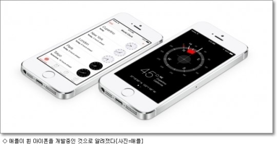º¸µµ¿¡ µû¸£¸é ¾ÖÇÃÀº 4.7ÀÎÄ¡¿Í 5.5ÀÎÄ¡ Å©±âÀÇ ÈØ ¾ÆÀÌÆù µðÀÚÀÎÀ» °³¹ßÇØ ³»³â ÇϹݱ⿡ À̸¦ Ãâ½ÃÇÒ °èȹÀÌ´Ù. ÀÌ Á¦Ç°Àº °¡ÀåÀÚ¸®°¡ ¾Æ·¡ÂÊÀ¸·Î ±Á¾îÁø ÇüÅ´Ù.