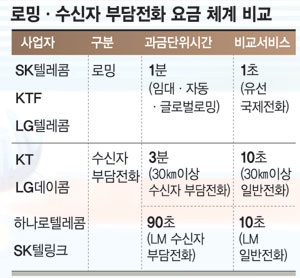 SKÅÚ·¹ÄÞ¡¤LGÅÚ·¹ÄÞÀº ÈÞ´ëÆù ·Î¹Ö ¿ä±ÝÀ» ÃÖ°í 1ºÐ ´ÜÀ§±îÁö °è»êÇÑ´Ù. ¹Ý¸é KTF ·Î¹Ö °í°´Àº ÇØ¿Ü¿¡¼­ ±¹³»·Î ÀüÈ­¸¦ °É ¶§´Â ¹«Á¶°Ç 1ºÐ ´ÜÀ§ ¿ä±ÝÀ» Àû¿ë ¹Þ´Â´Ù.