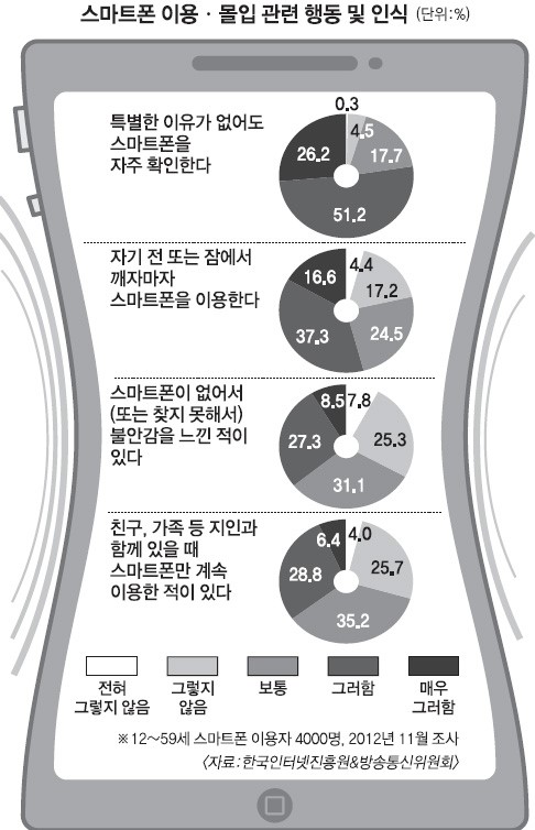 ½Åµ¿¿ø ¼º±Õ°ü´ë °ºÏ»ï¼ºº´¿ø Á¤½Å°Ç°ÀÇÇаú ±³¼ö´Â ¾ÆÀ̵鿡°Ô 2¼¼´ë(2G) ÈÞ´ëÀüȸ¦ »çÁÖ´Â µî ¡®¹°¸®Àû À庮¡¯À» ¸¸µå´Â °ÍÀÌ Áß¿äÇÏ´Ù°í Á¶¾ðÇß´Ù. ½Å ±³¼ö´Â ¡°´ÙÀÌ¾îÆ®¸¦ ÇÏ´Â »ç¶÷À» »ï°ã»ìÁý¿¡ µ¥·Á°¡ ³õ°í ¸ÔÁö ¸»¶ó°í Çϸé Âü±â ¾î·ÆµíÀÌ ¾Æ¿¹ µ¥·Á°¡Áö ¾Ê´Â °Ô Á¤´ä¡±À̶ó°í ¸»Çß´Ù. °ÔÀӱ⳪ ´ëÈÇÁ·Î±×·¥ ¿ªÇÒÀÌ Á¦ÇÑµÈ 2G ÈÞ´ëÀüȸ¦ ¾²µµ·Ï ÇØ µðÁöÅÐ Áßµ¶ °¡´É¼ºÀ» ¿øÃµ ºÀ¼âÇØ¾ß ÇÑ´Ù´Â °ÍÀÌ´Ù. µðÁöÅÐ Áßµ¶Àº ÀÌ¹Ì »çȸ Àü¹Ý¿¡ ÆÛÁ® ÀÖ´Ù. Áö³ÇØ ÃÊ ¹æ¼ÛÅë½ÅÀ§¿øÈ¸ÀÇ ¡®2012 ÇϹݱ⠽º¸¶Æ®Æù ÀÌ¿ë ½ÇÅ Á¶»ç¡¯ ÀÚ·á¿¡ µû¸£¸é ½º¸¶Æ®Æù ÀÌ¿ëÀÚÀÇ 77.4%°¡ ¡°Æ¯º°ÇÑ ÀÌÀ¯ ¾øÀÌ ½º¸¶Æ®ÆùÀ» ÀÚÁÖ È®ÀÎÇÑ´Ù¡±°í ´äÇß´Ù. ÀÏ»ó»ýȰ¿¡ ÁöÀåÀ» ¹ÞÀ» Á¤µµ¶ó°í È£¼ÒÇÑ »ç¶÷µµ 10¸í Áß 3¸íÀ̳ª µÆ´Ù. Á¤º¸Åë½ÅÁ¤Ã¥¿¬±¸¿ø¿¡ µû¸£¸é ¿ì¸® ±¹¹ÎÀÇ ÇÏ·ç Æò±Õ ½º¸¶Æ®Æù ÀÌ¿ë ½Ã°£Àº 66ºÐÀÌ´Ù.