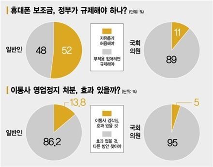 Á¤ºÎ°¡ º¸Á¶±ÝÀ» ±ÔÁ¦ÇÏ´Â °Í¿¡ ´ëÇØ¼´Â ¹Ý´ë ¿©·ÐÀÌ °ú¹ÝÀ» ³Ñ¾ú´Ù. £§»ç±â¾÷ÀÇ ¸¶ÄÉÆÃ ¼ö´ÜÀÎ µ¥´Ù º¸Á¶±ÝÀ» ¸¹ÀÌ ÁÖ¸é ÈÞ´ëÆùÀ» ½Ñ °ª¿¡ »ì ¼ö ÀÖ´Â ¼ÒºñÀڵ鵵 Àֱ⠶§¹®¿¡ ÀÚÀ¯·Ó°Ô Çã¿ëÇØ¾ß ÇÑ´Ù£§´Â ÀǰßÀÌ 51.8%¸¦ Â÷ÁöÇß´Ù. ¹Ý¸é £§°í°´µé¸¶´Ù õÂ÷¸¸º°·Î º¸Á¶±ÝÀÌ Áö±ÞµÅ °°Àº ÈÞ´ëÆùµµ ´©±¸´Â ½Î°Ô, ´©±¸´Â ºñ½Î°Ô »ç´Â ºÎÀÛ¿ëÀ» ¾ø¾Ö·Á¸é ±ÔÁ¦¸¦ ÇØ¾ß ÇÑ´Ù£§´Â ´äº¯Àº 47.2%¸¦ ±â·ÏÇß´Ù.