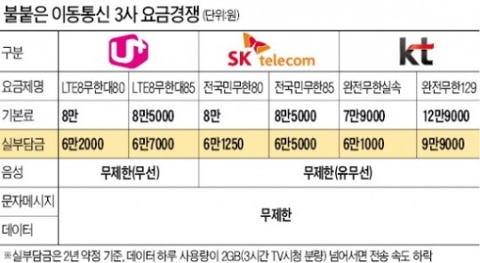 SKÅÚ·¹ÄÞ KT LGÀ¯Ç÷¯½º µî Åë½Å 3»çÀÇ ¿À·£ º¸Á¶±Ý °æÀïÀÌ ¸·À» ³»¸±±î.