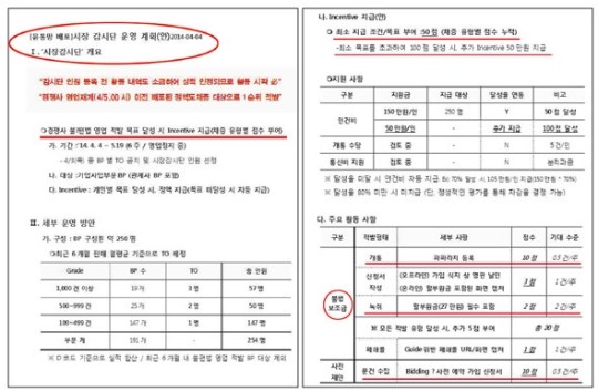 ½ÃÀå°¨½Ã´Ü¿ø¿¡°Ô´Â ÆäÀ̹é(Çö±Ý Á¦°ø), ºÎ´ç ÇÒÀÎ, ÀÜ¿© ÇÒºÎ±Ý ´ë³³, Ä«µå»ç Æ÷ÀÎÆ®·Î Áö¿ø±Ý Áö±ÞÀ» Æ÷ÇÔÇØ 27¸¸¿øÀ» ÃʰúÇØ º¸Á¶±ÝÀ» Áö±ÞÇϰųª ¿µ¾÷Á¤Áö ±â°£ Áß ¿¹¾à°¡ÀÔÀ» ¹Þ´Â ÇàÀ§ Àû¹ß, °æÀï¾÷üÀÇ ÁÖ¿ä ÆÇ¸ÅÁ¤Ã¥ ¹× ´Ü¸»±â ´Ü°¡Ç¥ ¼öÁý, °æÀï¾÷ü ¿µ¾÷µ¿Çâ ÆÄ¾Ç µîÀÇ ¡®ÀÓ¹«¡¯°¡ ÁÖ¾îÁ³´Ù. °æÀï¾÷ü ´ë¸®Á¡À» Á÷Á¢ ¹æ¹®ÇØ ½ÇÁ¦·Î °¡ÀÔÇÏ¸é¼ »ó´ã ³»¿ëÀ» ³ìÀ½Çϰí, ºÒ¹ý ¿µ¾÷ ³»¿ëÀÌ ´ã±ä ½Åû¼¿Í ´Ü°¡Ç¥ °°Àº °ÍÀ» ì±â¶ó´Â ¼¼ºÎ Áöħ±îÁö ³»·ÁÁ³´Ù. ¿µ¾÷Ȱµ¿ µîÀº »çÁøÀ» ÂïÀ¸¶ó°í Çß´Ù. ºÒ¹ý ÇàÀ§ Áõ°Å ¼öÁý ½ÇÀû, ¼öÁýµÈ Áõ°Å¿¡ Æ÷ÇÔµÈ ºÒ¹ý ÇàÀ§ÀÇ °æÁß µî¿¡ µû¶ó Àμ¾Æ¼ºê°¡ Â÷µî Áö±ÞµÈ´Ù.