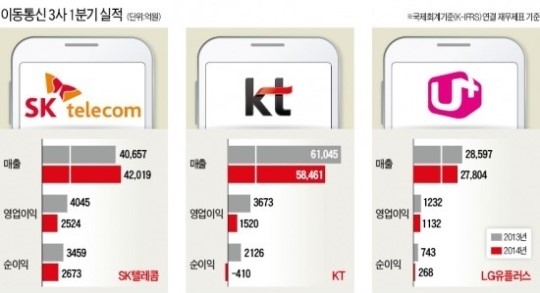 SKÅÚ·¹ÄÞ KT LGÀ¯Ç÷¯½º µî Åë½Å 3»ç°¡ ¿¹»ó´ë·Î ÃʶóÇÑ 1ºÐ±â ¼ºÀûÇ¥¸¦ ¹Þ¾Æµé¾ú´Ù. ¡®1¡¤23 ´ë¶õ¡¯ ¡®2¡¤11 ´ë¶õ¡¯ µî ¿¬ÃʺÎÅÍ Ä¡¿Çß´ø º¸Á¶±Ý °æÀïÀÌ °í½º¶õÈ÷ ½ÇÀû ¾ÇÈ ºÎ¸Þ¶ûÀ¸·Î µ¹¾Æ¿Ô´Ù´Â ºÐ¼®ÀÌ ³ª¿Â´Ù. Åë½Å¼ºñ½º Àå¾Ö¿Í À¯¼± ¸ÅÃâ °¨¼Ò µî °³º° ¾ÇÀçµµ ½ÇÀû ¾ÇÈ¿¡ ¿µÇâÀ» ¹ÌÃÆ´Ù.