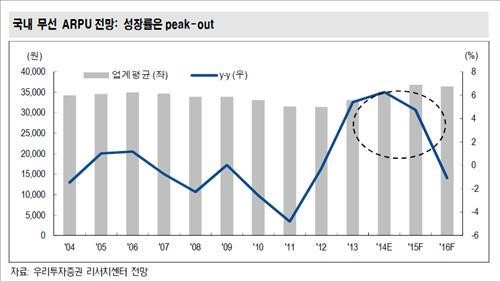 ARPU Æò±ÕÄ¡´Â Áö¼ÓÀûÀ¸·Î Áõ°¡ÇÏ¸ç ³»³â¿¡´Â 3¸¸6õ748¿ø¿¡ À̸¦ Àü¸ÁÀÌ´Ù. ±×·¯³ª 2016³â¿¡´Â 1.1% °¨¼ÒÇϸç 3¸¸6õ385¿øÀ¸·Î ³»·Á°¥ °ÍÀ¸·Î ¿¹»óÇß´Ù.