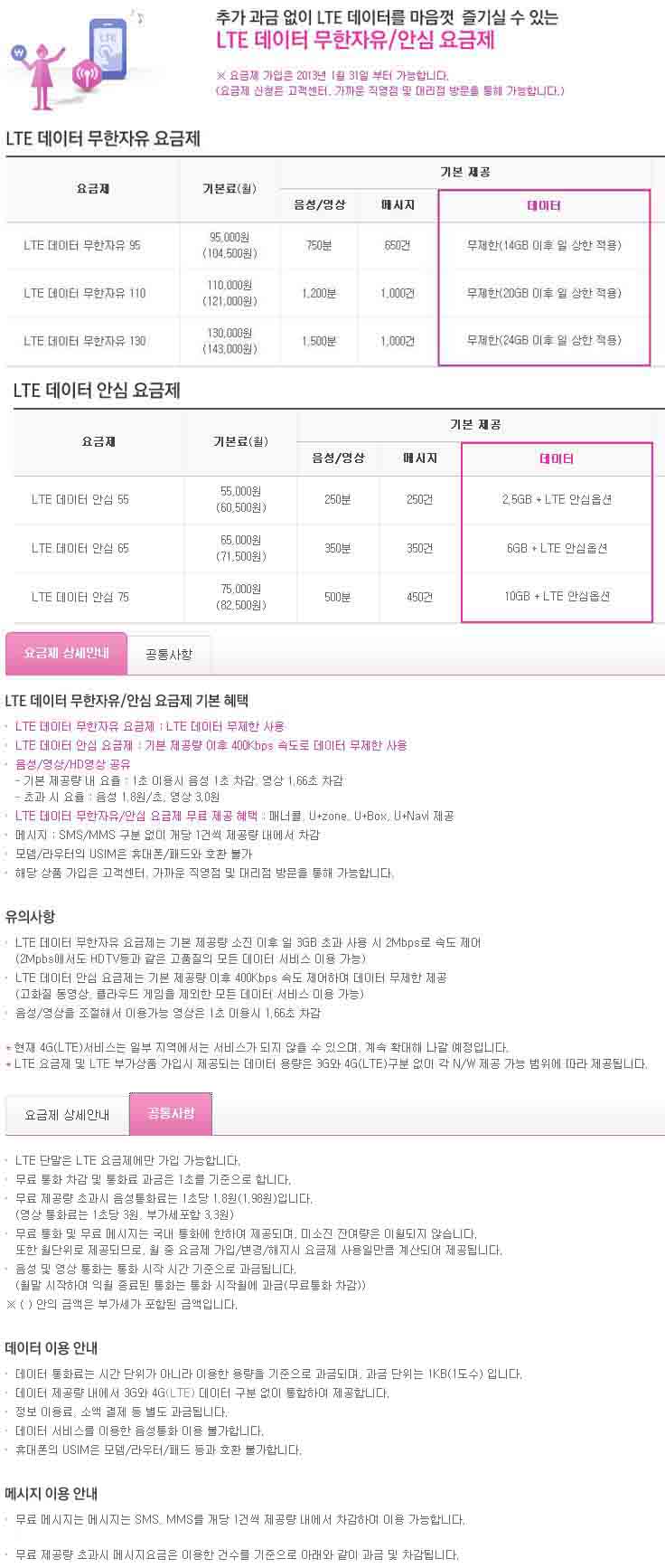 [Åë½Å»çÁ¤Ã¥] [LGU+] LTE¹«Á¦ÇÑ ¿ä±ÝÁ¦ ¹× ¾È½É¿É¼Ç ¿ä±ÝÁ¦ Ãâ½Ã ¾È³»