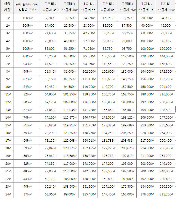 [÷ºÎ] T³¢¸® ¿ä±ÝÁ¦ ÇÒÀιÝȯ±Ý Ç¥(24°³¿ù ¾àÁ¤)